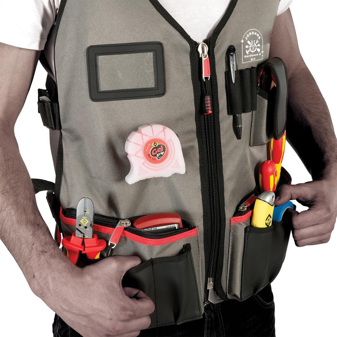 Jordans Hardware & DIY Technicians Tool Vest, Water Resistant, Adjustable and Breathable Utility Apron for Electricians, Plumbers and Tradesmen, Work Vest with 14 Pockets and Holders